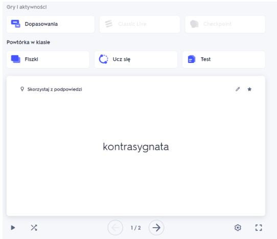 FISZKI w formie elektronicznej w aplikacji QUIZLET